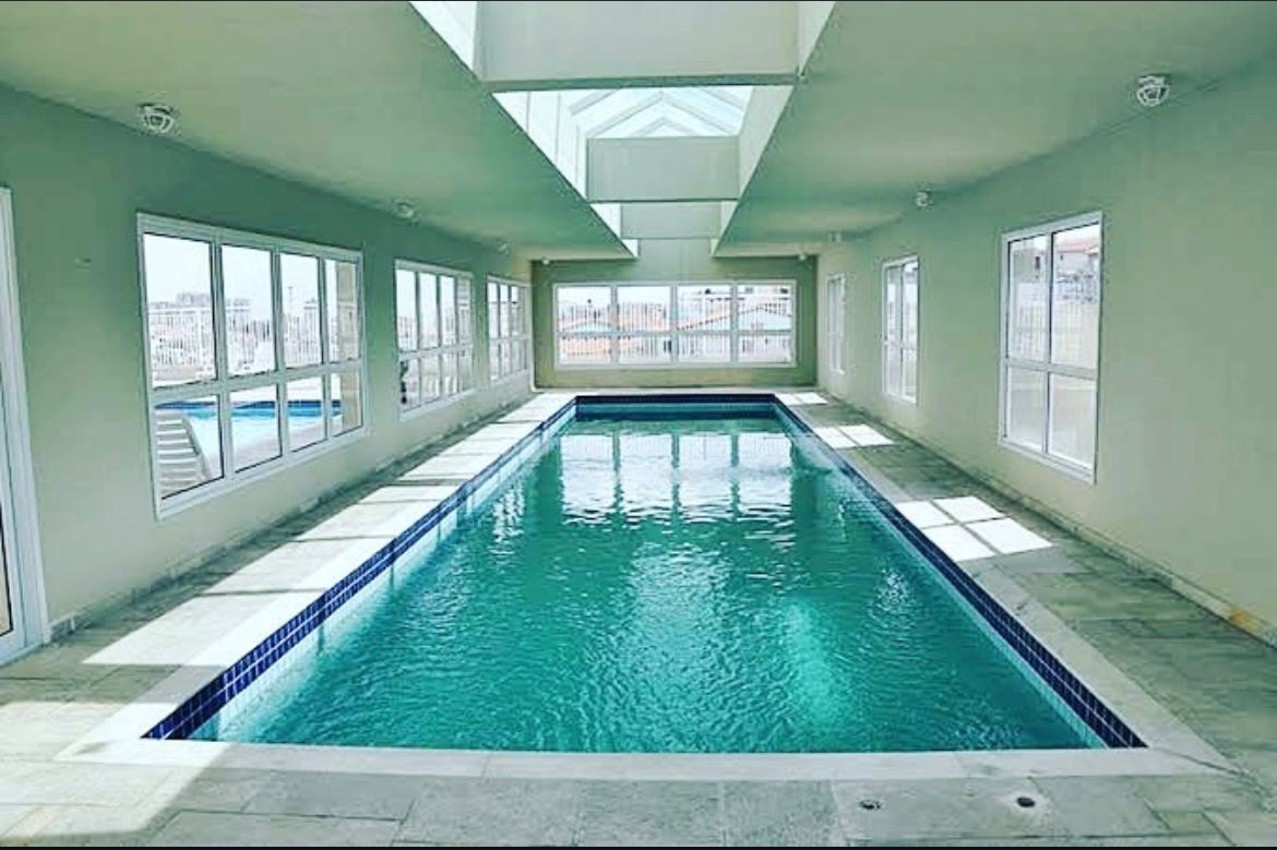 Piscina coberta, salão de festa, brinquedoteca, cinema