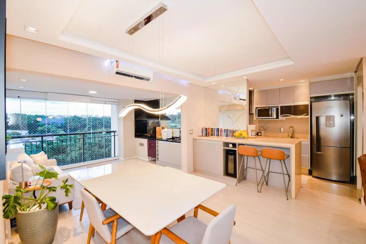 - Ambientes Sociais: Sala ampliada com elegante teto rebaixado com sanca, perfeitamente integrada a uma excelente varanda gourmet, garantindo o espaço ideal para receber amigos e familiares.